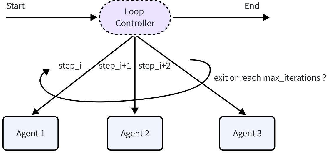 WorkflowAgent runs agents according to a preset flow. ADK provides three base Workflow agents: Sequential, Parallel, and Loop. They can be nested to build more complex tasks.
